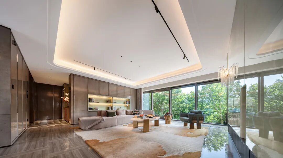 在成都锦宸院,这一系统与LDKG一体化超大空间结合,创造出“会客”、“影音”、“亲子”等无缝切换的场景,空间功能因科技而变得柔性、多变。