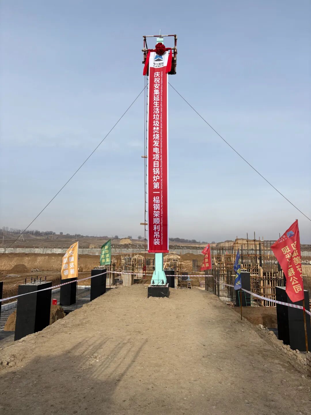 近日,公司投资建设的乌兹别克斯坦安集延生活垃圾焚烧发电项目,锅炉主体首榀钢架吊装作业顺利完成,高达11米、重约5吨的锅炉钢架平稳移动并安置到预定基础。
