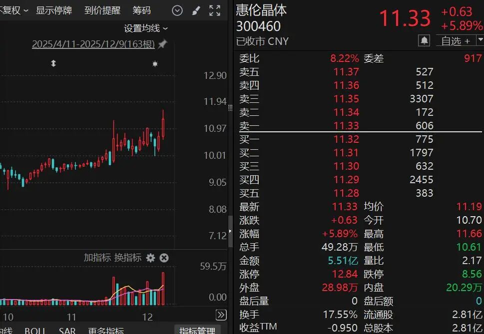 惠伦晶体股票将自12月10日开市起停牌1天,12月11日复牌后被实施其他风险警示。其股票简称变更为ST惠伦,日涨跌幅限制不变,仍为20%。