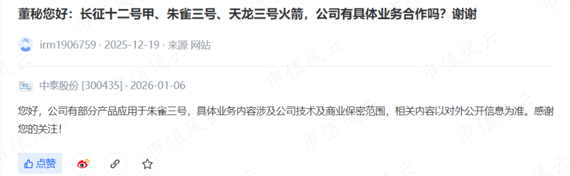 除了传统领域,中泰股份也在尝试拓展前沿领域。