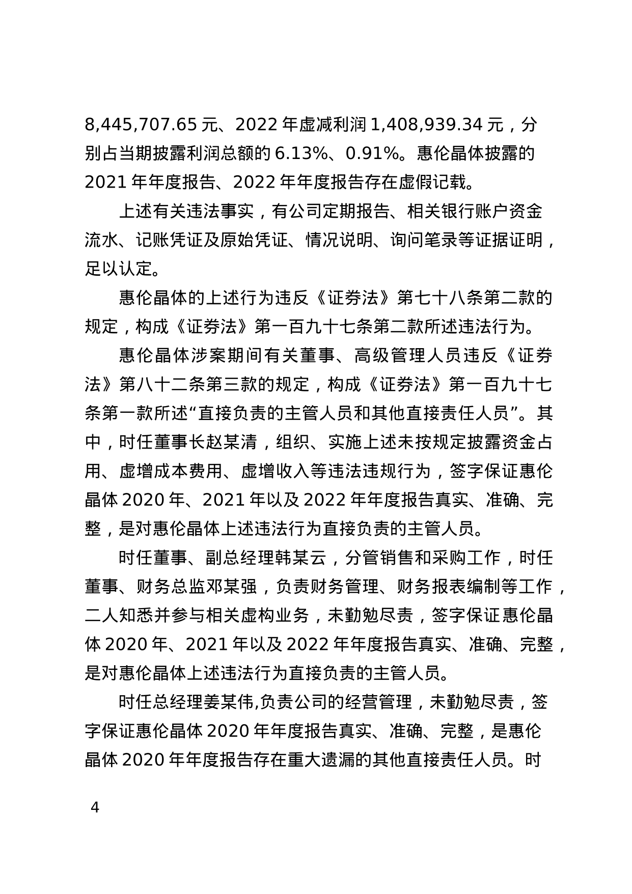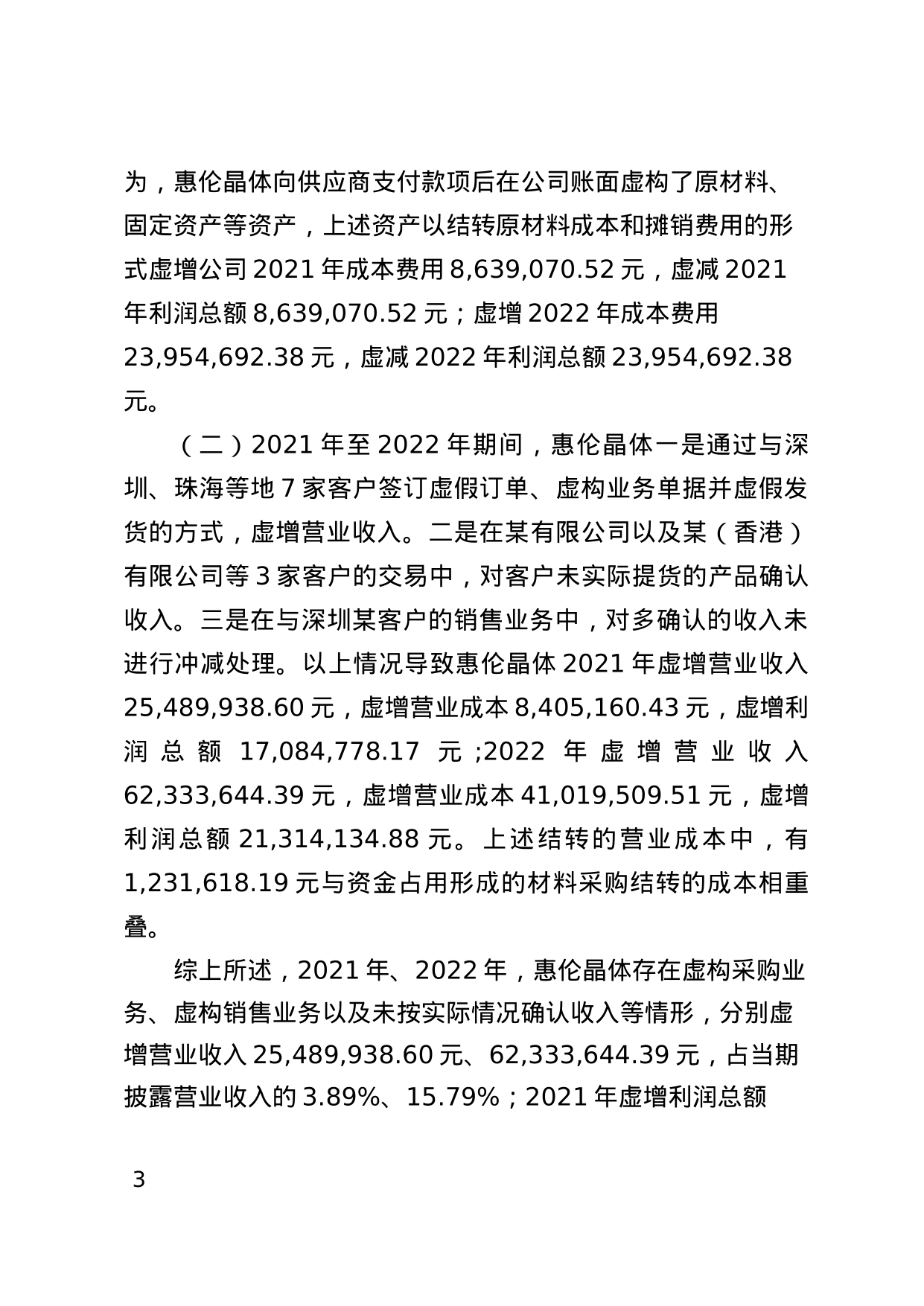 决定书显示,惠伦晶体存在以下违法事实:惠伦晶体未按规定披露资金占用事项,2020年年度报告存在重大遗漏;惠伦晶体虚增成本费用,虚增收入,2021年,2022年年度报告存在虚假记载。