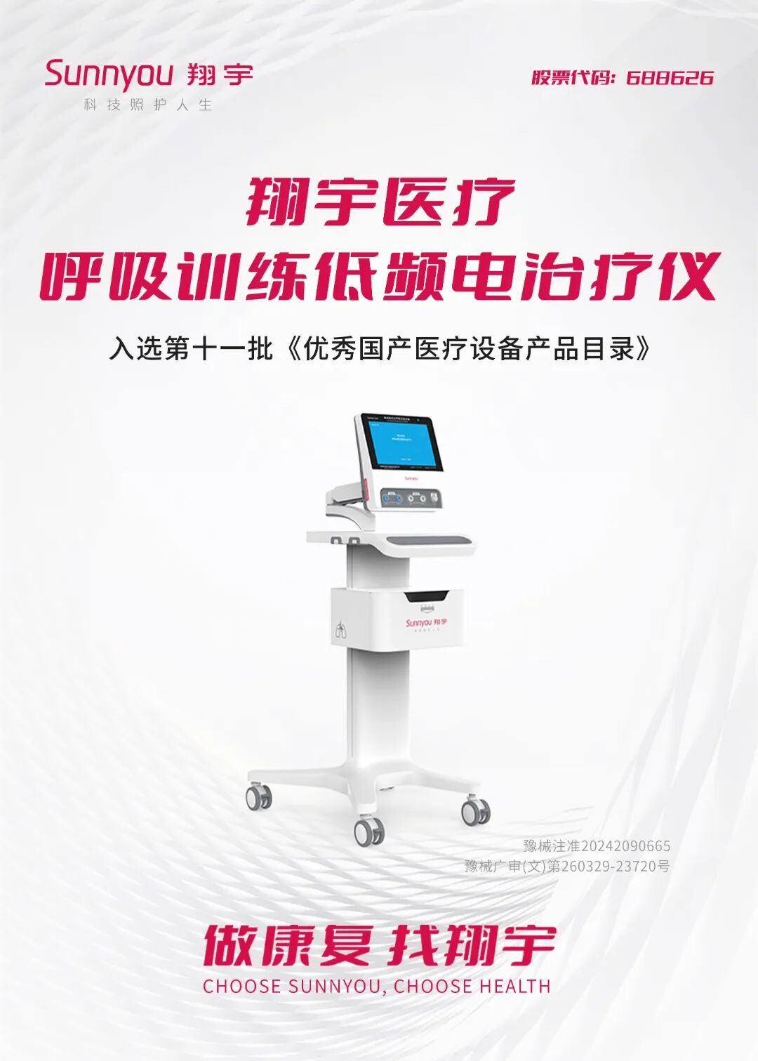 如今,一项由翔宇医疗自主研发的呼吸康复解决方案给出了令人瞩目的答案——呼吸训练低频电治疗仪,凭借其创新技术与优越的临床性能,成功入选第十一批《优秀国产医疗设备产品目录》,标志着国产高端呼吸康复设备迈入了新阶段。