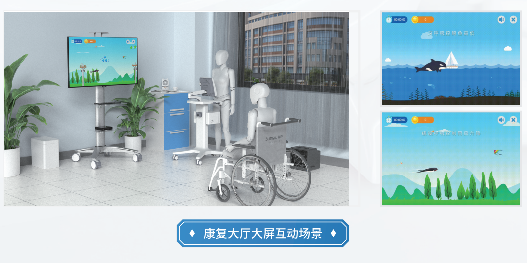 为提高患者的参与感与治疗依从性,设备集成了游戏化训练功能。通过互动游戏,患者在训练的同时增加了趣味性,轻松完成呼吸训练,提升了康复的积极性和互动性。