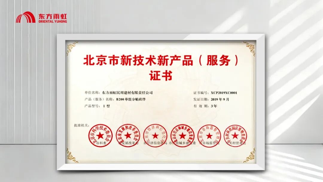 2019年,产品获得北京市新技术新产品证书,不仅充分展现出社会、行业对东方雨虹技术创新能力的认可,更是企业从单一材料供应商迈向建筑系统服务商的有力证明。