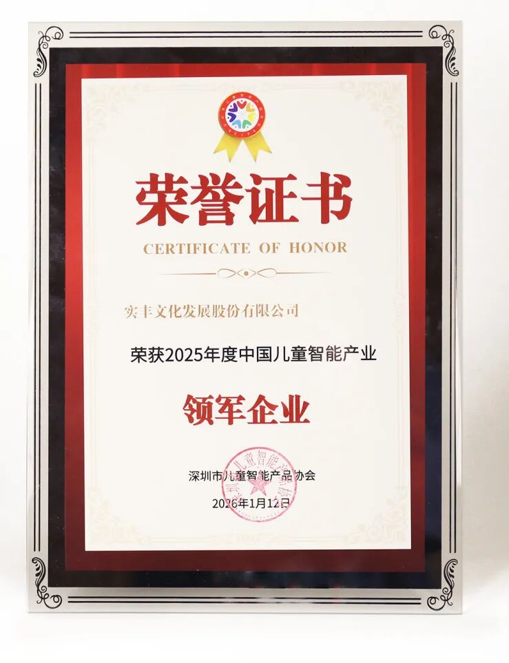 近日,第八届中国儿童智能产业大会在深圳举办,深圳市儿童智能产品协会牵头搭建产业交流平台,汇聚行业精英共探儿童智能产业发展新路径。实丰文化(002862)发展股份有限公司(以下简称“实丰文化”、股票代码:002862)受邀参展,携多款前沿AI玩具产品精彩亮相,凭借科技与童趣融合的创新体验,荣获“2025年度中国儿童智能产业领军企业”称号。
