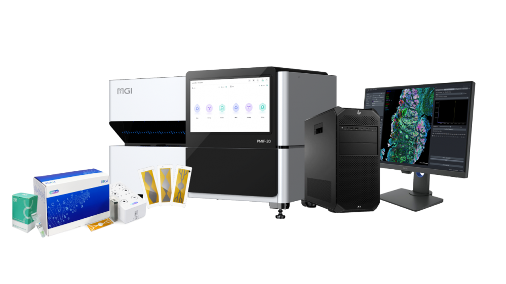 PMIF-20深度融合FluoXpert多重免疫荧光(mIF)技术,专注于实现组织切片的自动化染色与扫描,其染色与成像性能与FluoXpert多组学分析仪保持一致。FluoXpert多组学分析仪由华大智造于2024年推出,是国内首款将人工智能深度融入全流程,集病理切片染拍与基因测序功能于一体的自主创新设备,能够实现病理组织染拍与空间蛋白组学整合分析,为肿瘤微环境研究提供了前所未有的高精度工具。华大智造自研了集成深度学习细胞分割、多轮图像配准、信号解混及背景荧光扣除等核心算法,形成完整的病理切片多重荧光染色图像的AI分析体系,有力支撑平台实现23重蛋白标记的自动化、产品化突破。此外,FluoXpert Vision作为配套的核心分析解决方案,内含AI Assistant模块,集成DeepSeek大模型,可智能分析用户需求、自主完成代码编写、编译绘图。
