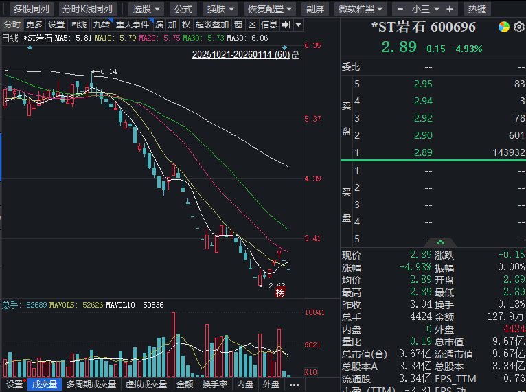 昨日,*ST岩石公告称,公司预计2025年度营业收入不足3亿元且扣非前后净利润均为负,将触及财务类终止上市情形。