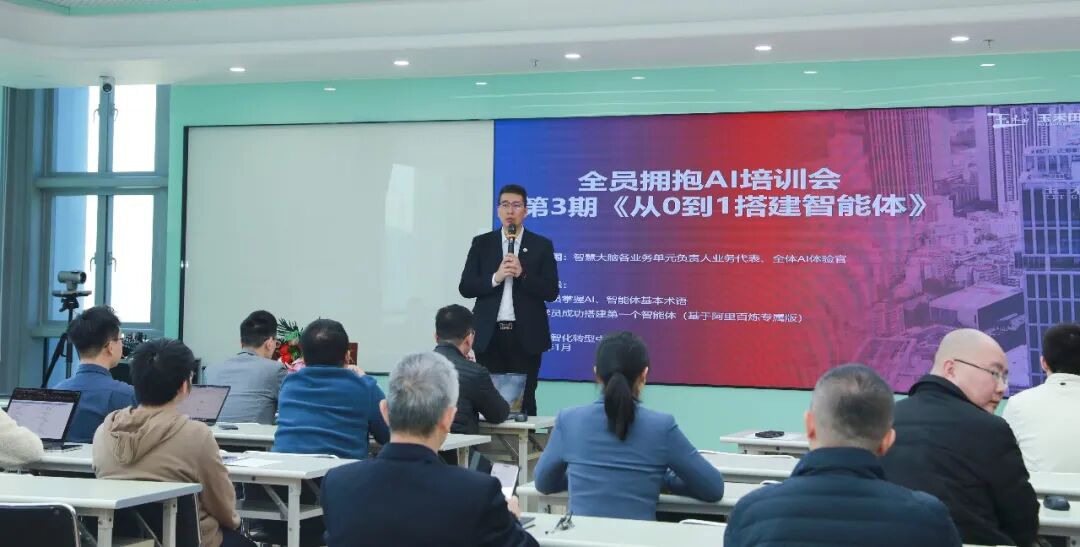 在集团"数智转型创新发展,同心协力共筑未来"战略指引下,玉禾田(300815)集团于2026年1月9日成功举办了"全员拥抱AI培训第3期——从0到1搭建第一个智能体"专题培训。本次培训标志着全员拥抱AI进入实操新阶段,为集团数智化转型注入新动能。