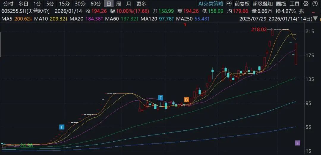 停牌核查复牌后连续两个跌停的天普股份,1月14日再度涨停。