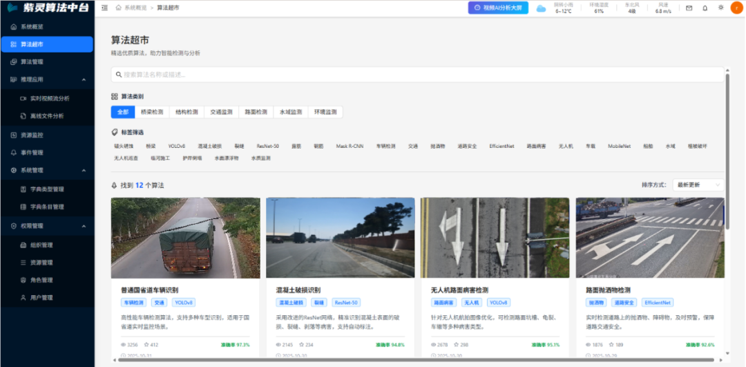 华设“紫灵”算法中台为AIBox终端提供核心算法支撑,依托多年交通行业深耕积淀,汇聚150+类交通专用算法模型与100万+视频图像样本库,可实现交通拥堵、车辆自燃、路面病害、抛洒物、人员落水、船舶违规、低空飞行物闯入等50+种交通事件的精准检测,全面覆盖公路、水运、低空、执法治理四大核心场景。AI Box终端则承载中台算法能力,凭借工业级硬件特性,在白天、夜间及雨雾等恶劣天气下稳定运行,精准识别各类交通事件,典型事件检测准确率超90%,高效落地“感-知-控”全链路闭环的前端检测与识别环节。