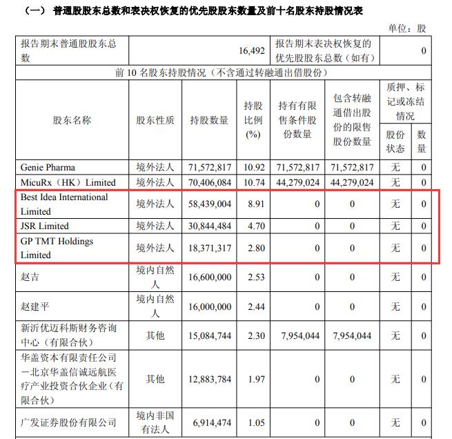 盟科药业2025年第三季度报告显示,Best Idea、JSR、GP TMT分别为公司第三、第四、第五大股东。