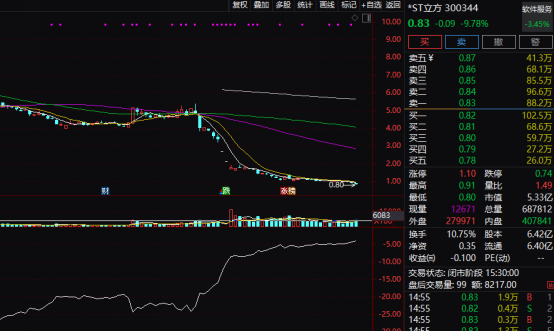 *ST立方则是自2025年11月下旬开启股价连续下跌之旅,公司股价从超过5元跌至目前仅0.83元,不到两个月的时间里股价累计跌幅已经超过80%。从2026年1月13日开始*ST立方股价跌破1元,截至目前已连续3个交易日收盘价低于1元。