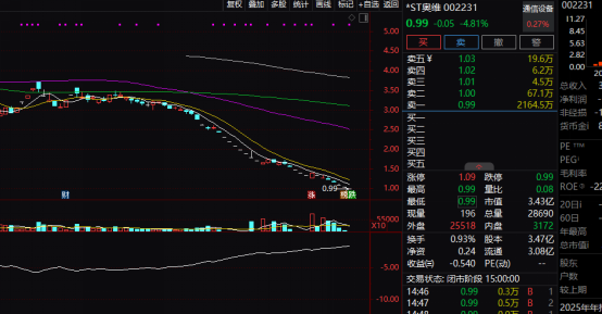 *ST奥维则于今日跌破1元,最新股价报0.99元,最近一个月时间里公司股价已经“腰斩”。