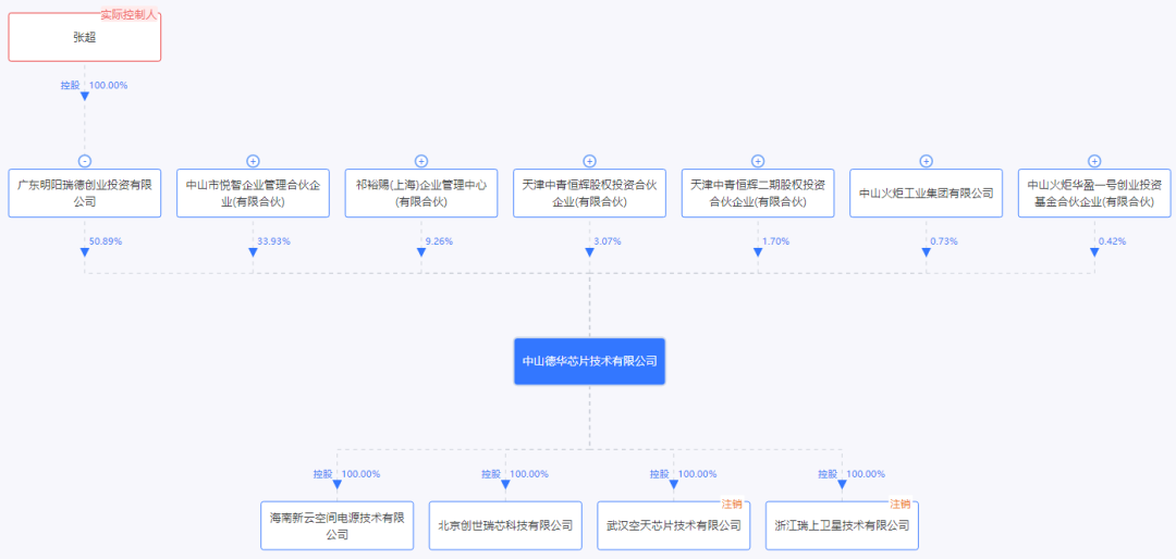 2020年5月,由张超全资持股的广东明阳瑞德创业投资有限公司(简称“瑞德创业”)入主德华芯片,持股50.89%,张超同步出任公司董事长。