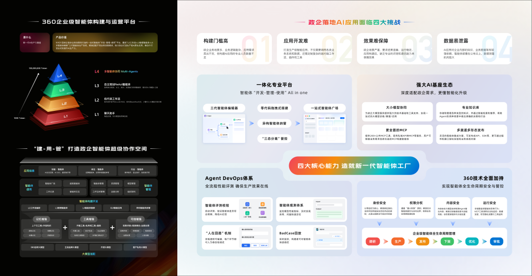 面对政企市场更复杂的场景,360于2025年10月正式发布了企业级智能体构建与运营平台,该平台基于全球首个L4级别的“智能体工厂SEAF”构建,旨在系统性解决政企用户在智能体落地中遇到的“不能用、不好用、不放心”的挑战。据了解,SEAF平台提供上百种工具协议和上万个开箱即用的智能体,以“乐高式”的模块化架构,帮助企业低门槛、全链路地构建和管理专属智能体。总的来说,这一采用私有化部署、支持信创环境的平台,为政企用户提供了加速智能体安全落地的“一站式解决方案”。