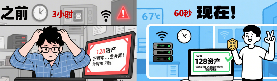 业务安全双保障:无感扫描技术实现 “安全排查不影响业务运转”,既满足重保期间的安全合规要求,又保障业务运营目标不受干扰;