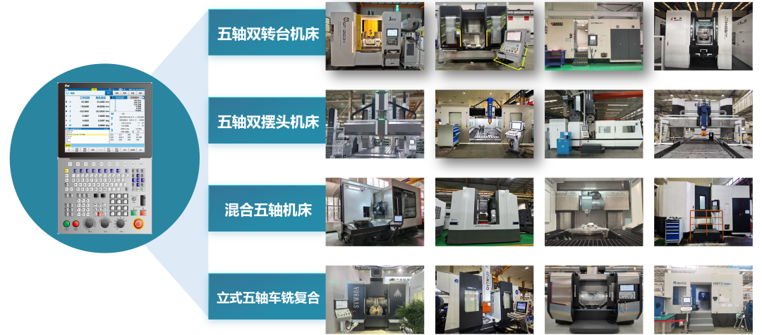 该系统适配多种主流高端五轴设备,包括五轴双转台、双摆头、混合式以及立式五轴车铣复合机床,能够灵活应对精密模具、医疗器械等领域的复杂加工需求。