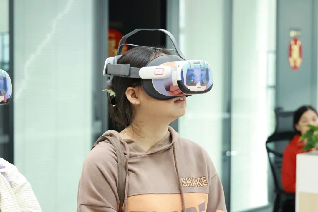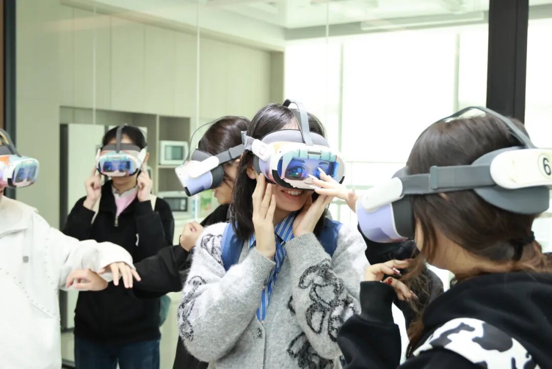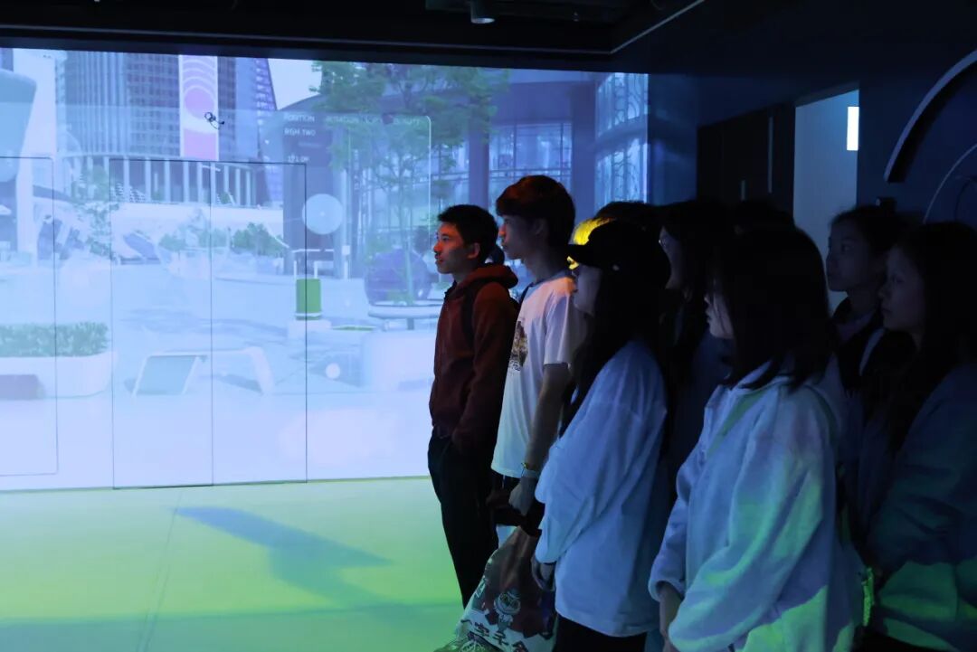 在宏景科技工作人员的引导下,中大师生一行先后走进数智创新体验中心、数智机房,并沉浸式体验VR故事项目。伴随着讲解员的讲解,让师生们直观感受科技赋能产业发展的生动实践,近距离触摸行业前沿动态。