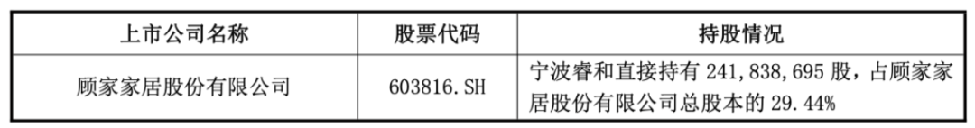 其中宁波睿和也是顾家家居(603816)的控股股东,现持有29.44%的股权。