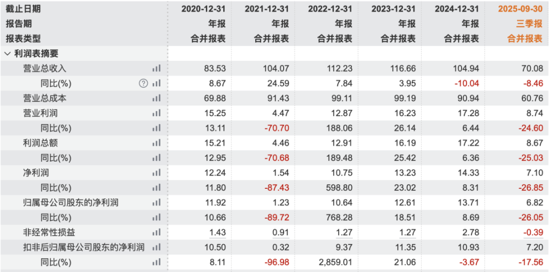 2024年归母净利润为13.71亿,创上市以来历史新高,但股价依然很低迷。前三季度扣非净利润为7.2亿,同比下降17.56%,主要还是下游地产和消费的低迷。