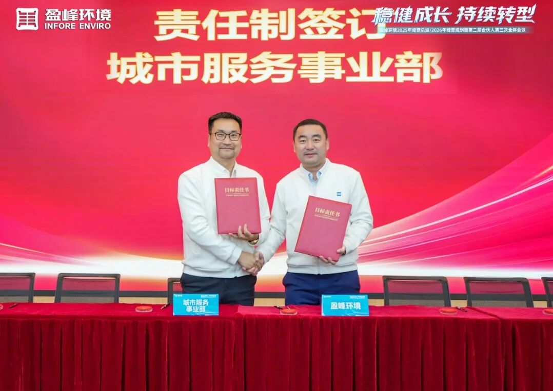 此次会议的圆满召开,不仅全面总结了2025年的经营成果与经验,更明确了2026年及未来三年的战略方向与行动路径。面向未来,盈峰环境将以此次会议为新起点,坚守“稳健成长,持续转型”的发展理念,依托合伙人机制凝聚强大合力,聚焦“智能装备、智慧服务、智云计算”战略方向,以科技创新驱动商业成功,不断探索新赛道、培育新增长极,持续引领环保产业发展新浪潮,奋力谱写更加辉煌的发展篇章!