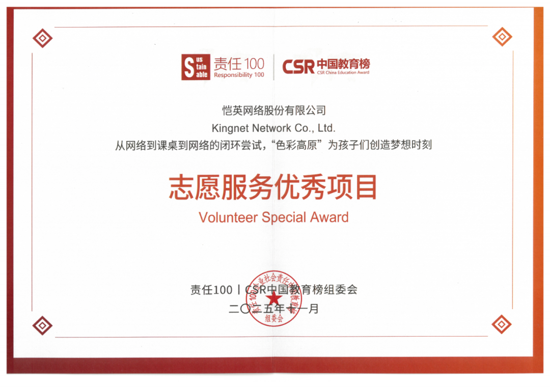 恺英网络(002517)凭借持续、系统、创新的企业社会责任实践,连续第五年获评“CSR CHINA TOP100最佳责任企业品牌”。同时,“色彩高原”项目荣获“志愿服务优秀项目”,《从网络到课桌到网络的闭环尝试,“色彩高原”为孩子们创造梦想时刻》案例入选《第九届CSR中国教育榜优秀案例选编》。