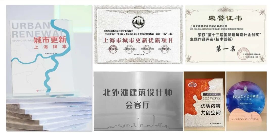 上海德邻公寓在城市更新从“大规模增量建设”转向“存量提质改造”的关键阶段中所进行的创新实践,为上海存量历史建筑的可持续活化提供了系统解决方案与可推广的实践范本。迄今为止,上海德邻公寓已获得来自行业和政府的双重认可,不仅作为优秀案例,,,并被授予 “北外滩艺术空间联盟成员单位”等荣誉。