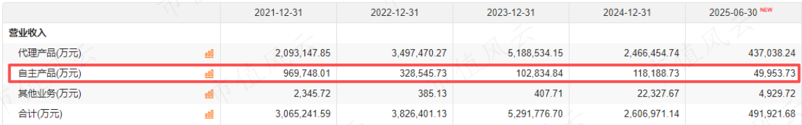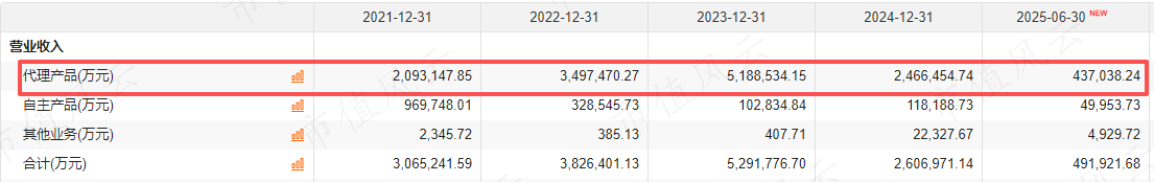 代理收入在2024年腰斩之后,2025年上半年继续暴跌,实现43.7亿元,同比下滑75.16%。