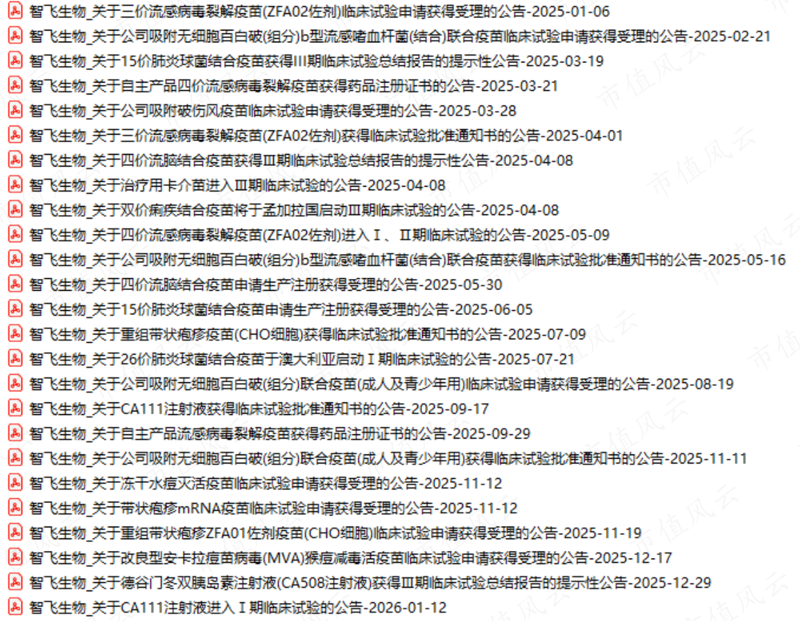 面对代理业务的断崖式下滑,智飞生物加速向研发转型。从公告来看,2025年自研管线有不少进展。