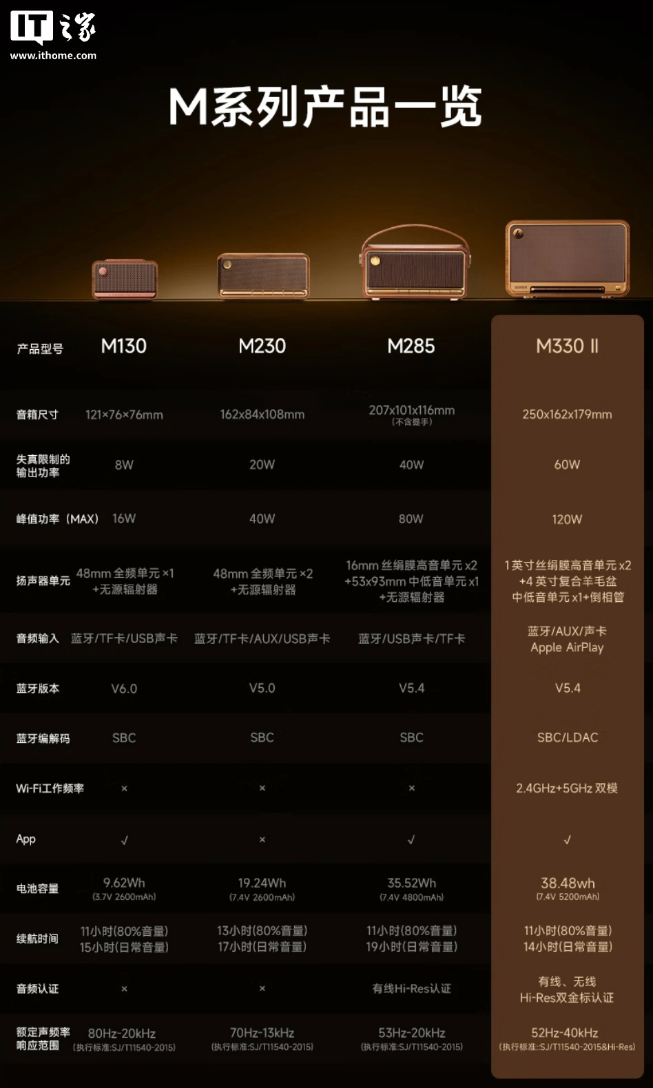 漫步者 M330 II 蓝牙音箱发布:新增支持 LDAC 协议、苹果 AirPlay,959 元