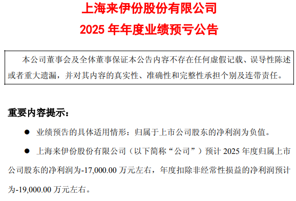 上市以来最差!来伊份2025年预亏翻倍,控股股东再抛上亿元减持计划