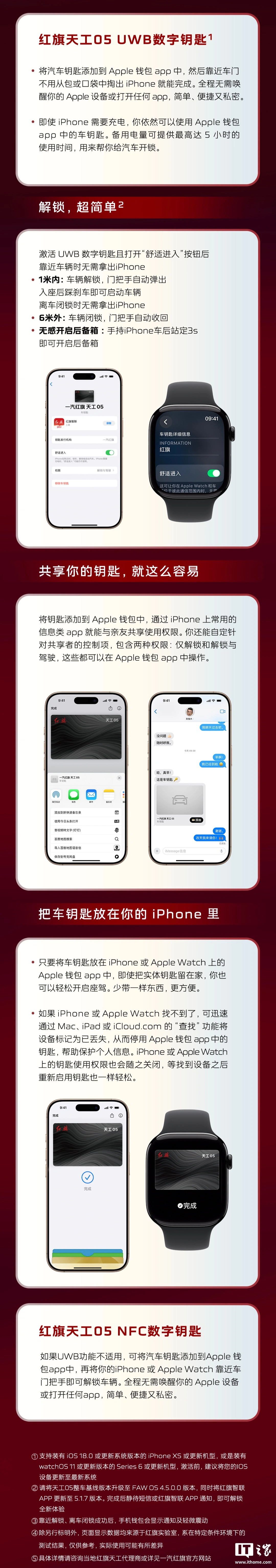 IT之家附一汽红旗天工 05 苹果数字钱包 UWB 车钥匙开通要求如下: