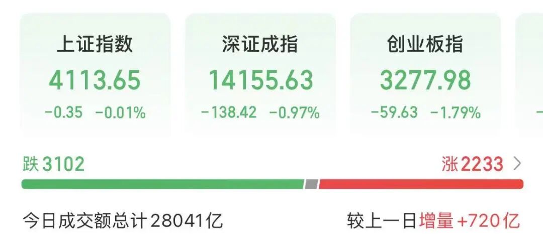 今天,A股三大指数回调。截至收盘,上证指数下跌0.01%,深证成指下跌0.97%,创业板指下跌1.79%。