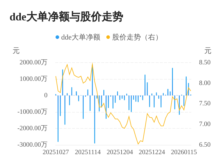 *ST双成(002693)01月20日DDE大单资金(主力资金)净流入64.39万元,两市排名1543/5186。近3日*ST双成主力资金持续流入,3日共净流入1990.29万元。