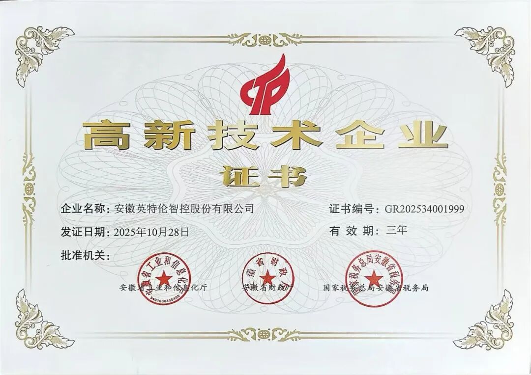 近日,安徽华骐环保(300929)科技股份有限公司旗下子公司安徽英特伦智控股份有限公司正式通过国家高新技术企业认定。该认定标志着英特伦智控在核心技术自主创新、科技成果转化及成长性等方面获得国家认可,将进一步促进其研发投入与技术升级,提升市场竞争力。