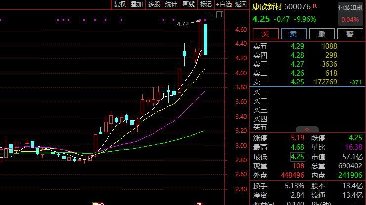 1月21日,康欣新材股价开盘大幅低开后跌停。