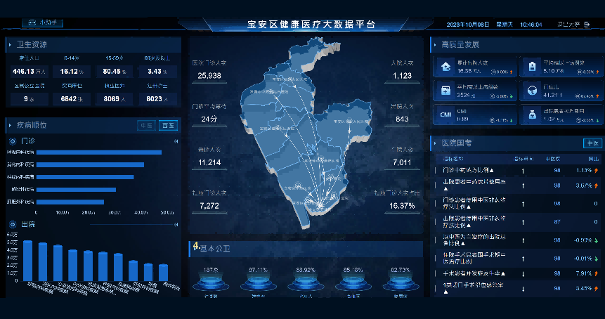 宝安区智慧健康一体化平台贯通9家公立医院,10家公卫分中心,218家公立社康,涵盖日常体征、体检报告、电子病历、检验检查单、影像报告、处方与用药记录、慢病管理等全链路数据。