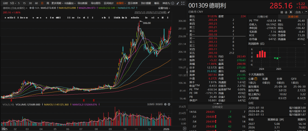 今日A股市场中,多只存储芯片行业个股爆发。数据显示,自2025年初至今,德明利的股价累计上涨超过350%。