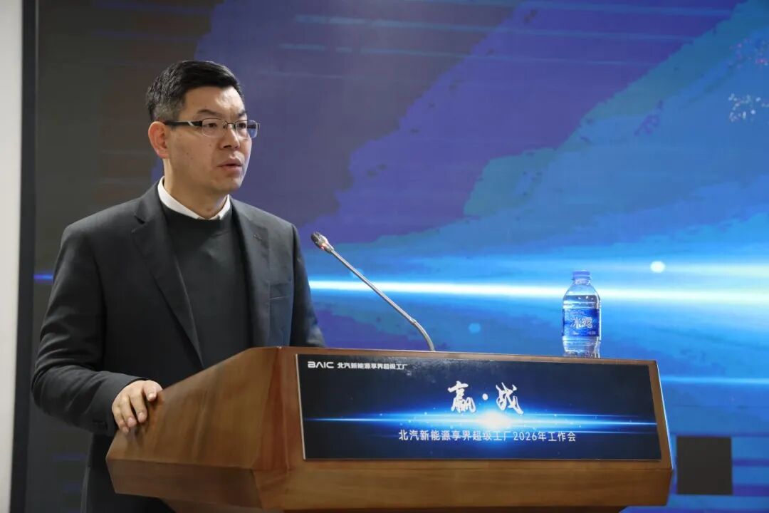 为进一步贯彻落实北汽集团及北汽新能源工作会精神,把战略部署转化为落地举措,近日,北汽新能源享界超级工厂召开2026年度工作会,全面复盘2025年工作得失,系统部署2026年重点任务。北汽新能源党委常委、副总经理、北京分公司党委书记高建军,北汽新能源党委常委、副总经理兼享界事业部总裁马磊出席会议并讲话。