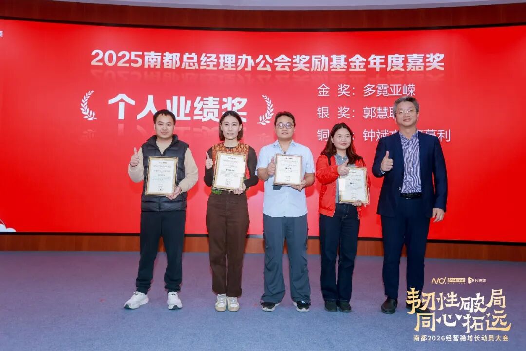 大会现场颁发了年度协同服务奖、年度增量开拓奖、年度个人业绩奖、年度团队奖以及2025南都总经理办公会奖励基金第四季度嘉奖等多个重磅奖项。