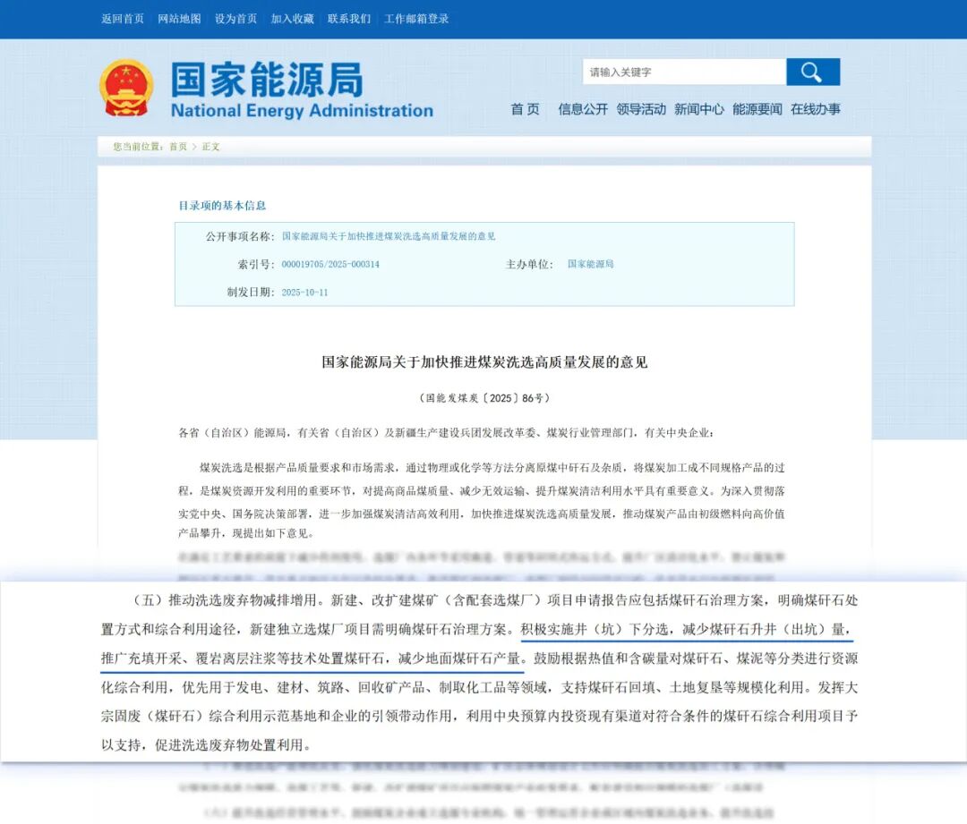 在“十五五”规划的开局之年,煤炭行业的绿色转型迎来了清晰且刚性的战略指引。近期密集出台的两大国家级政策文件——《固体废物综合治理行动计划》(国发〔2025〕14号)与《关于加快推进煤炭洗选高质量发展的意见》(国能发煤炭〔2025〕86号),共同构成了一幅从“源头减量、过程管控”到“末端利用、系统治理”的完整行动蓝图。