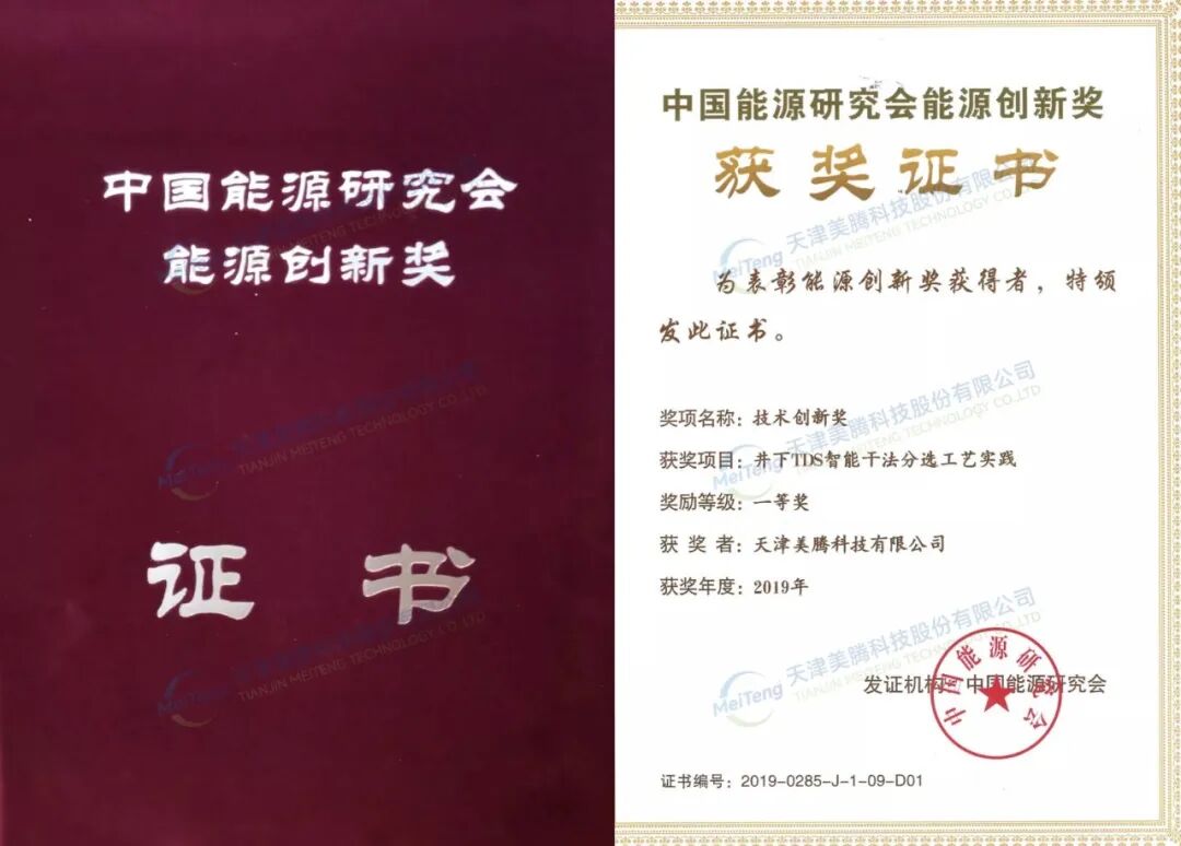 “井下TDS智能干法分选工艺实践”项目,荣获2019年度中国能源研究会能源创新一等奖。