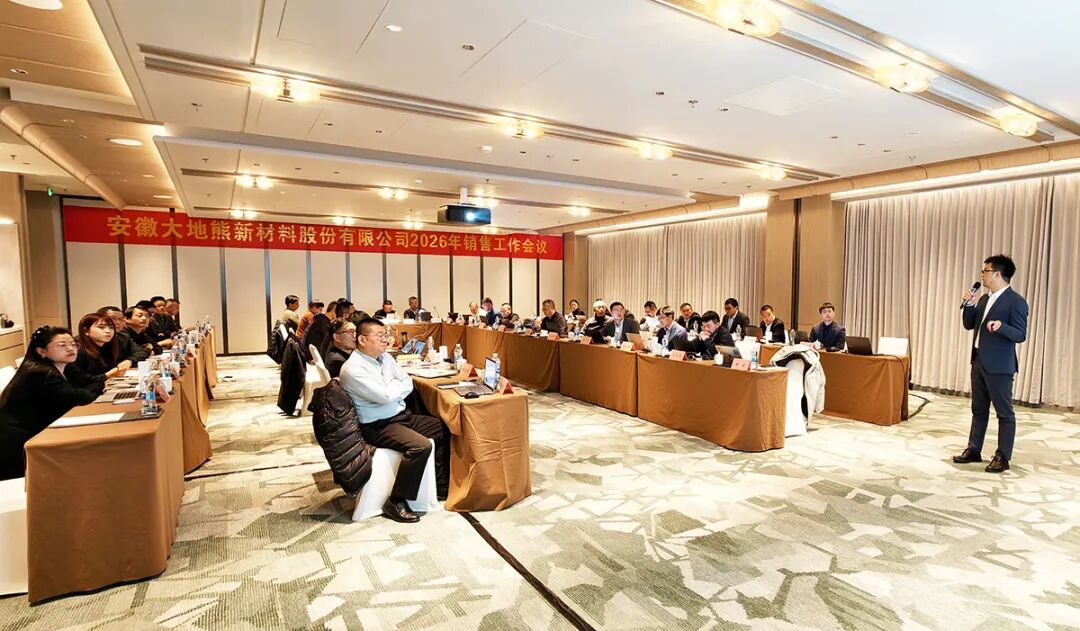 2026年1月18-19日,大地熊召开2026年销售工作会议,上海、深圳、合肥、包头、宁国、德国、日本等分子公司负责人及业务骨干共40余人齐聚一堂,跨越地域界限凝聚发展共识,共绘2026年市场开拓新蓝图。董事长熊永飞先生率公司管理层出席会议。