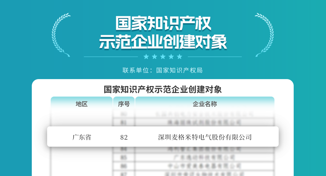喜报!麦米电气入选国家知识产权示范企业创建对象,以创新筑就发展新高度