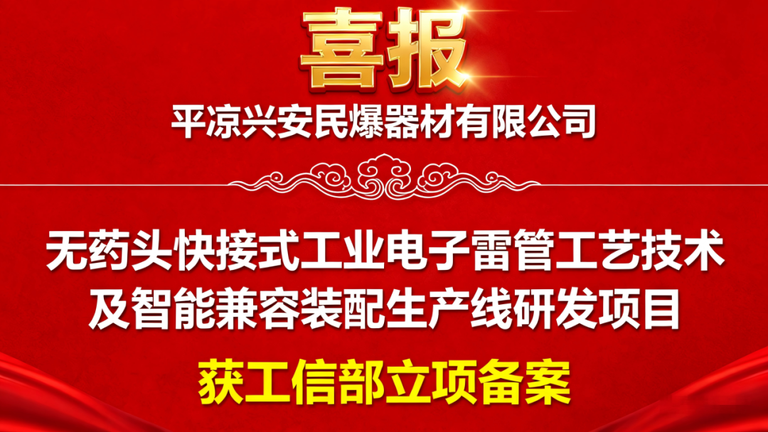 日前,工业和信息化部安全生产司对甘肃宏大下属平凉兴安“无药头快接式工业电子雷管工艺技术及智能兼容装配生产线研发项目”予以立项备案,标志公司在工业电子雷管核心工艺与智能化装配技术创新上迈出关键一步,对提升本质安全意义重大。