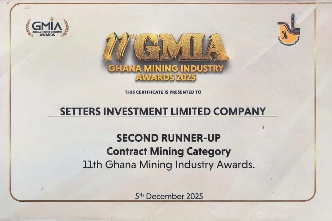 2025年度(第十一届)加纳矿业大奖(Ghana Mining Industry Awards)于近日揭晓。金诚信(603979)股份驻加纳子公司——开拓者投资有限公司(Setters Investment Limited Company)从众多参评企业中脱颖而出,荣获“最佳矿山承包商”(Best Performer in Contract Mining)季军殊荣,成为本年度获得该专业奖项的唯一中资企业,体现了当地权威行业机构对金诚信在安全管理、质量管控、合规运营、生产组织和技术创新等方面综合实力的高度认可。