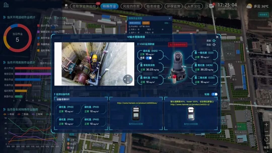 基于TDLAS激光、红外、气云成像、傅里叶成像、声学成像等先进传感与AI,打造了一系列便携式、固定式等智能仪器仪表产品,并形成了“点线面体”立体化气体探测矩阵,结合安全风险智能化管控平台,可对钢铁企业的各类危险气体、粉尘、火焰等进行实时可视化监测,实现安全风险分级管控、隐患排查治理、风险监测预警与综合应急的一体化智慧管理。