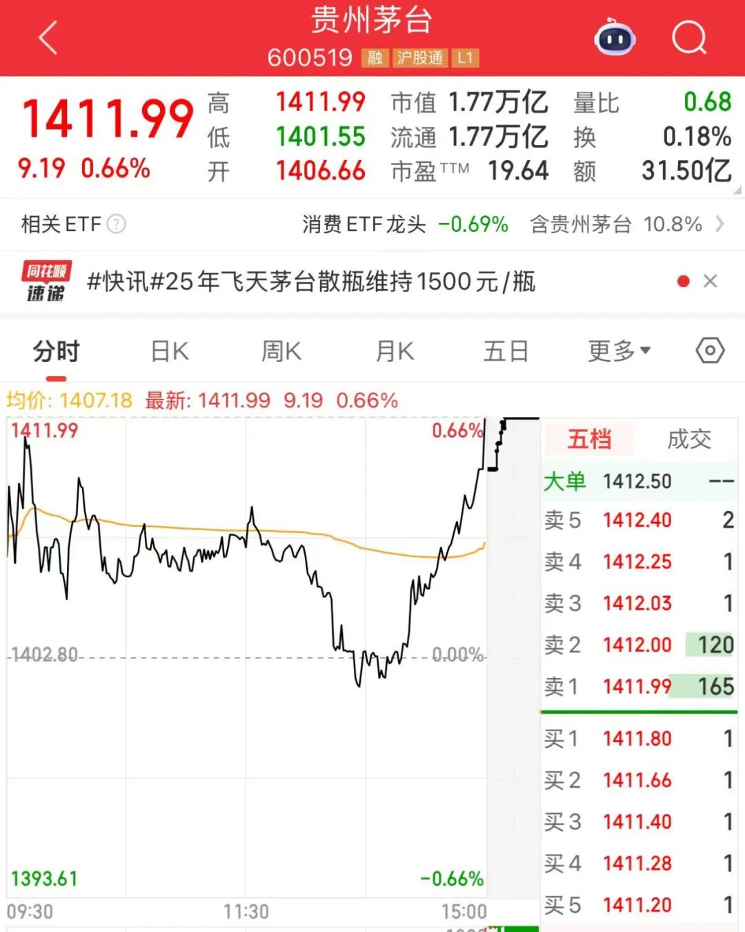 值得一提的是,贵州茅台12月11日发布的《2025年中期权益分派实施公告》显示,公司2025年中期利润分配方案已获股东大会通过,将以总股本12.52亿股为基数,每股派发23.957元现金红利(含税),共计派发300.01亿元(含税)。股权登记日为2025年12月18日,除权(息)日和现金红利发放日均为2025年12月19日。