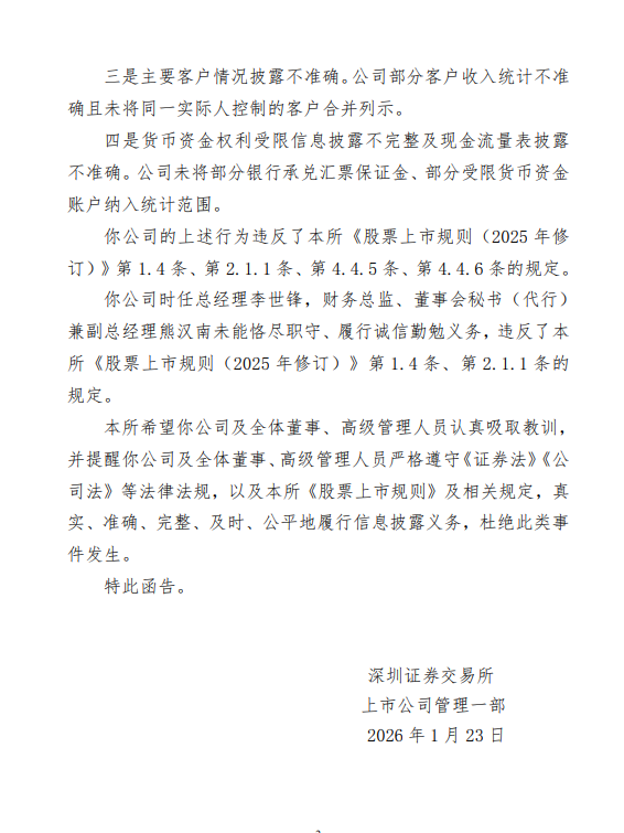 1月23日,深交所披露关于对江西万年青(000789)水泥股份有限公司、李世锋、熊汉南的监管函。