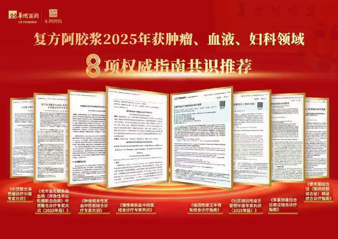 在中医药现代化与国际化进程中,循证医学研究正成为连接传统智慧与现代科学的关键桥梁。东阿阿胶(000423)核心产品复方阿胶浆在这一领域取得重大进展——2025年,凭借扎实的临床数据与确切的疗效,该产品已陆续获得:《癌因性疲乏中西医结合诊疗指南》《多囊卵巢综合征病证结合诊疗指南》《更年期综合征(围绝经期综合征)病证结合诊疗指南》《慢性病贫血中西医结合诊疗专家共识》《肿瘤相关性贫血中西医结合诊疗专家共识》《社区癌因性疲乏管理中国专家共识(2025年版)》《老年急性髓系白血病(非急性早幼粒细胞白血病)中西整合诊疗专家共识(2025年版)》《中西整合淋巴瘤诊疗中国专家共识》八项国内权威临床指南与专家共识推荐,覆盖肿瘤、血液、妇科内分泌等多种疾病领域,标志着其临床价值获得现代医学体系的高度认可。